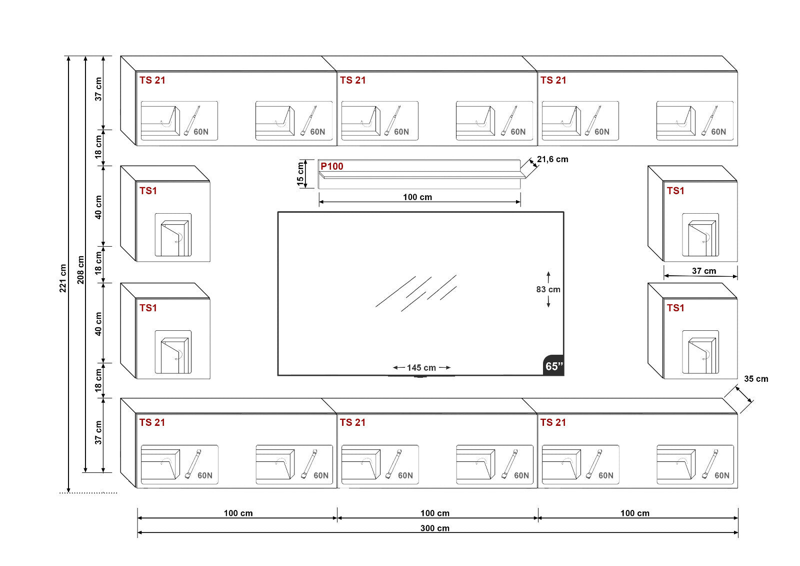 Fixing System Not Included – Choose suitable fixings for your wall type
