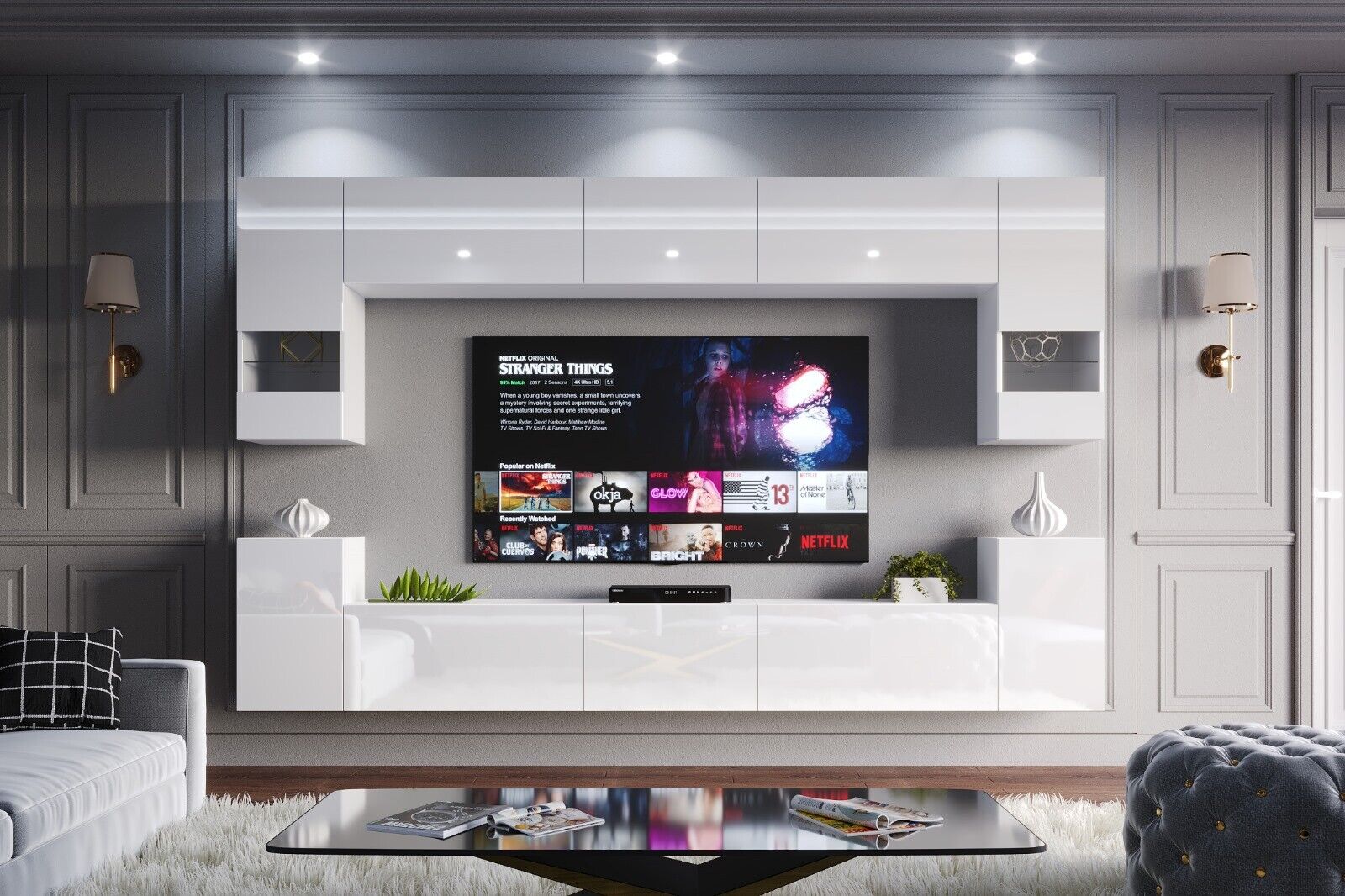 Contemporary Living room furniture set Entertainment Tv Unit White Gloss Modern c27 XXL